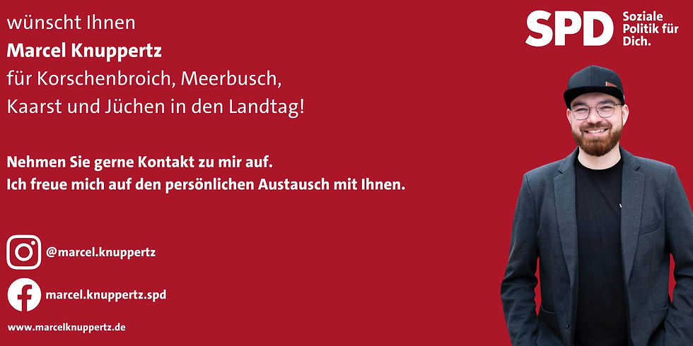 Frohe Weihnachten!Maximilian Simeth24. Dez. 20211 Min. LesezeitFrohe Weihnachten und einen guten Rutsch ins neue Jahr mit Gesundheit wünscht Ihnen Marcel Knuppertz im Namen der SPD-Korschenbroich als unser Landtagskandidat.
